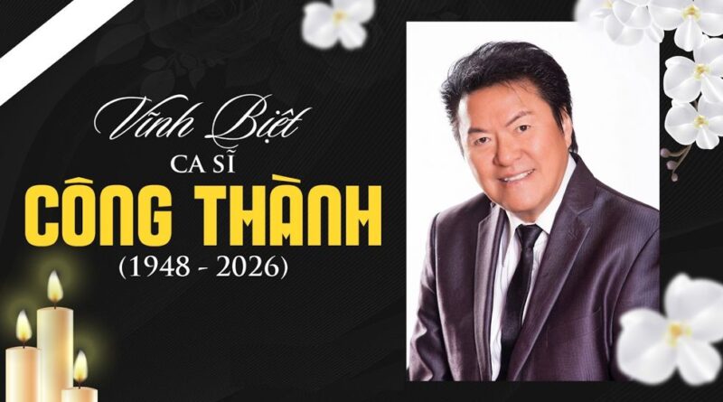 FOUNTAIN VALLEY, California – Ca sĩ Công Thành vừa qua đời lúc 1 giờ 25 phút chiều Thứ Sáu, 10 Tháng Tư (giờ địa phương), tại bệnh viện MemorialCare Orange Coast Medical Center, Fountain Valley, hưởng thọ 79 tuổi.