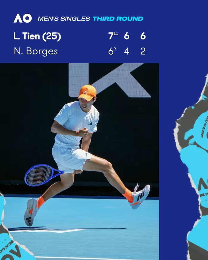 Learner Tien tiếp tục hành trình ấn tượng tại Australian Open khi vượt qua Nuno Borges để lần thứ hai liên tiếp góp mặt ở vòng 4 giải Grand Slam trên đất Úc. Đối thủ kế tiếp của anh khá quen thuộc: cựu số một thế giới Daniil Medvedev.