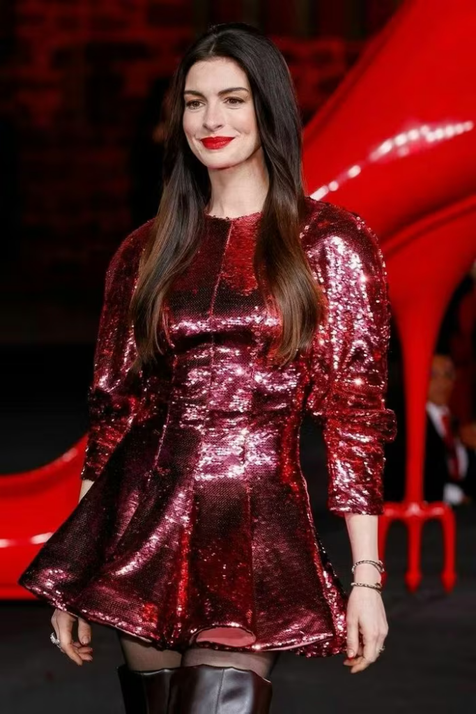Trong năm nay, nữ diễn viên bận rộn với 5 dự án điện ảnh mới, đáng chú ý nhất là phần 2 của Yêu nữ hàng hiệu trở lại sau 20 năm làm mưa làm gió toàn cầu. Dù lịch trình dày đặc, Hathaway luôn giữ hình ảnh rạng rỡ và tràn đầy sức sống mỗi khi xuất hiện. Nhan sắc của nữ diễn viên ngày càng thăng hạng, luôn gây ấn tượng mạnh khi xuất hiện trên thảm đỏ.