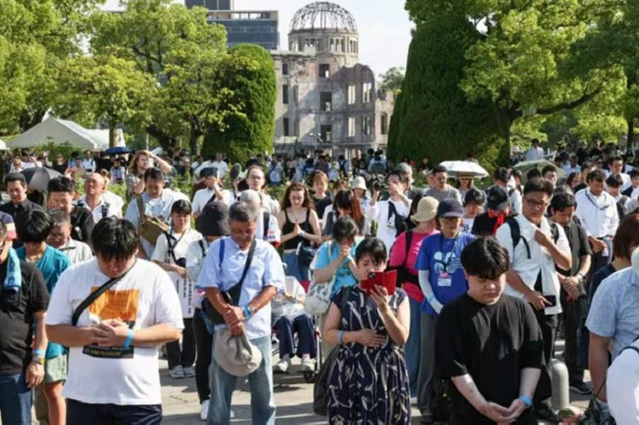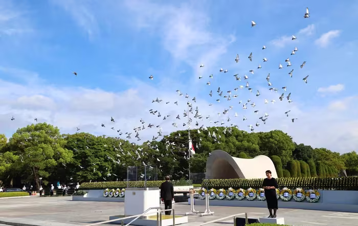 Đúng 8h15 ngày 6/8 (theo giờ địa phương), vào thời điểm quả bom nguyên tử ném xuống thành phố Hiroshima cách đây 80 năm, khoảng 55,000 người người tham dự buổi lễ tưởng niệm tại Công viên Tưởng niệm hòa bình đã dành 1 phút mặc niệm tưởng nhớ các nạn nhân đã thiệt mạng trong vụ ném bom.