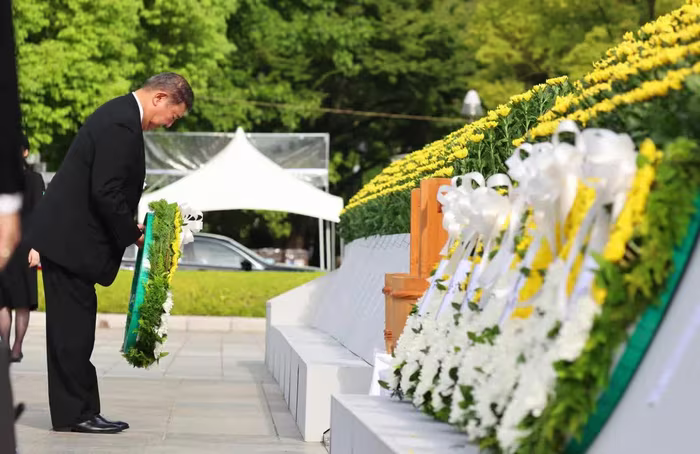 Sau khi đặt vòng hoa tại đài tưởng niệm, Thủ tướng Nhật Bản Ishiba Shigeru đã kêu gọi tất cả các quốc gia nỗ lực hướng tới giải trừ vũ khí hạt nhân.