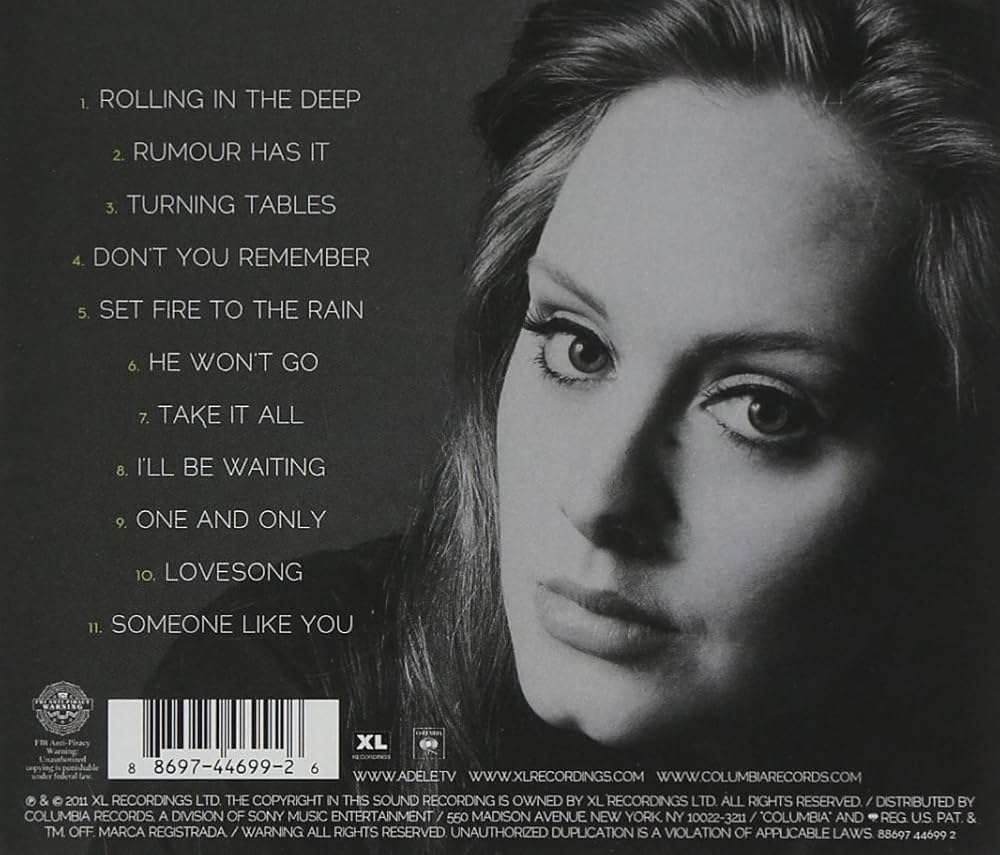21 được xem là bước ngoặt đưa Adele từ một tài năng trẻ của nước Anh trở thành biểu tượng âm nhạc toàn cầu. Album khai thác sâu sắc những cảm xúc hậu tan vỡ trong mối tình đầu lớn của nữ ca sĩ, với loạt ca khúc nhanh chóng trở thành “quốc dân” như Rolling In The Deep, Someone Like You, Set Fire To The Rain, Rumour Has It hay Turning Tables.