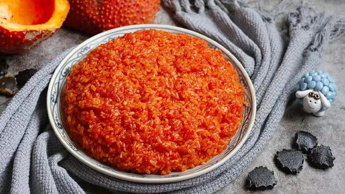 Màu đỏ tượng trưng cho may mắn, hỷ sự. Xôi gấc thường xuất hiện trong mâm cỗ đầu năm với niềm tin mang đến vận đỏ, khởi đầu suôn sẻ.