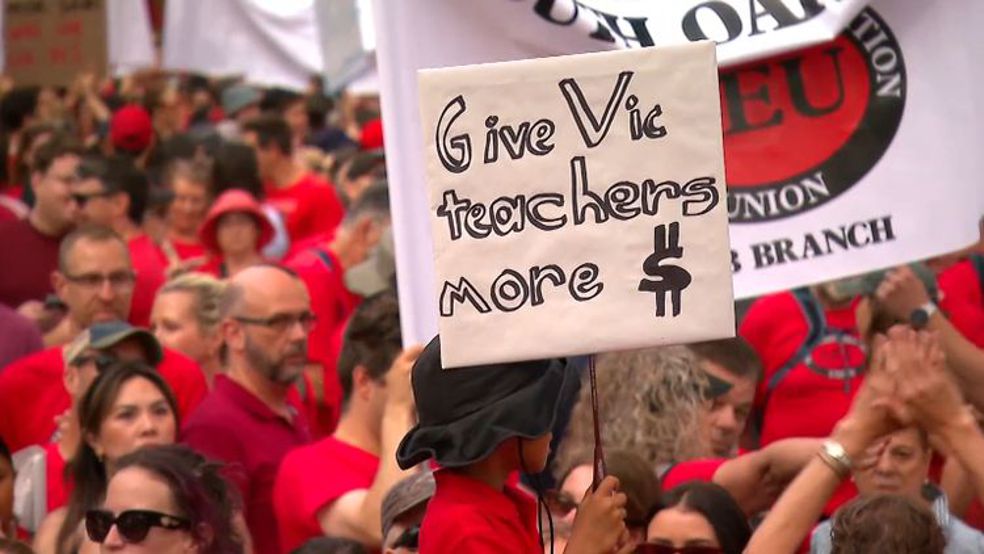 Cuộc tuần hành tại trung tâm Melbourne được mô tả là ‘lớn nhất trong nhiều năm’, phản ánh căng thẳng gia tăng giữa giáo viên và chính quyền về tiền lương, điều kiện làm việc.