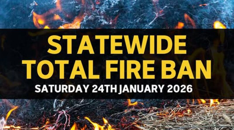 Lệnh cấm đốt lửa hoàn toàn đã được ban hành cho toàn tiểu bang vào ngày mai thứ Bảy 24-1 do các đám cháy lớn vẫn đang bùng phát và nguy cơ các đám cháy mới bùng phát và lan rộng nhanh chóng.