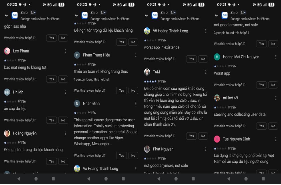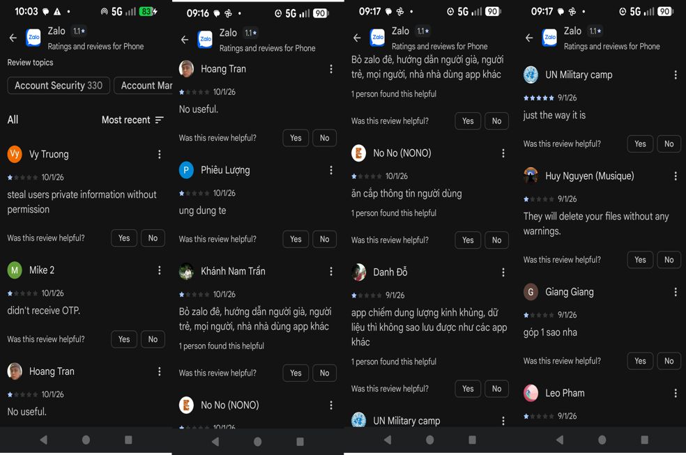 Zalo bị hàng triệu người dùng đánh giá 1,1 sao